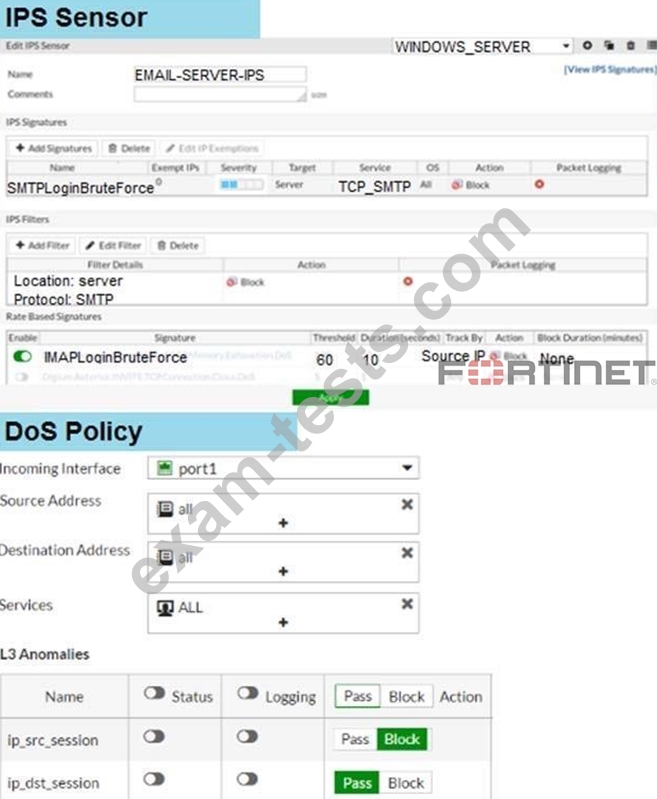 Examine the IPS sensor and DoS policy configuration shown in the exhibit, then answer the question below.