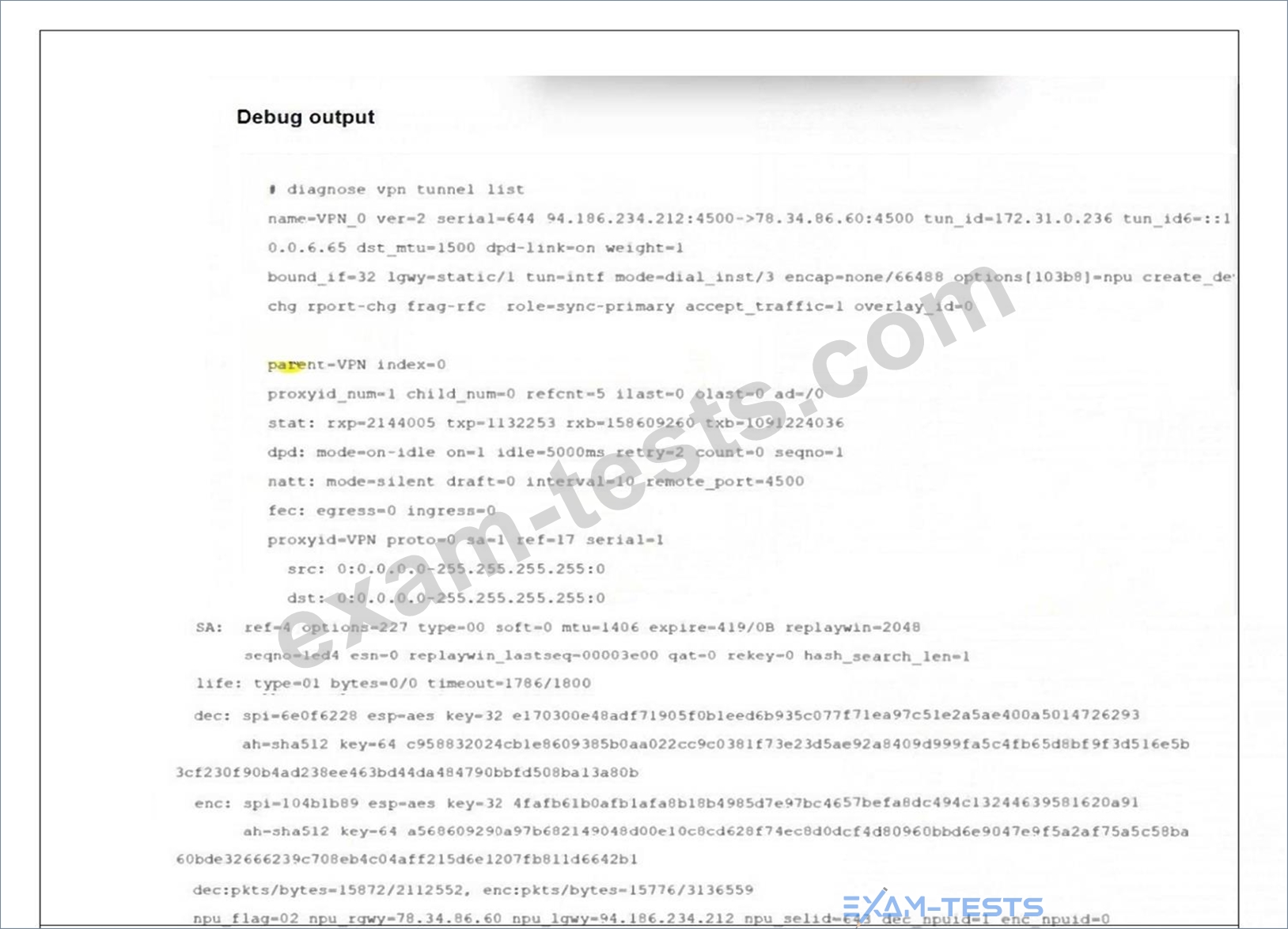 Refer to the exhibit, which contains the output of the command diagnose vpn tunnel list.