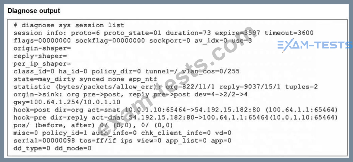 Refer to the exhibit, which shows the output of diagnose sys session list.