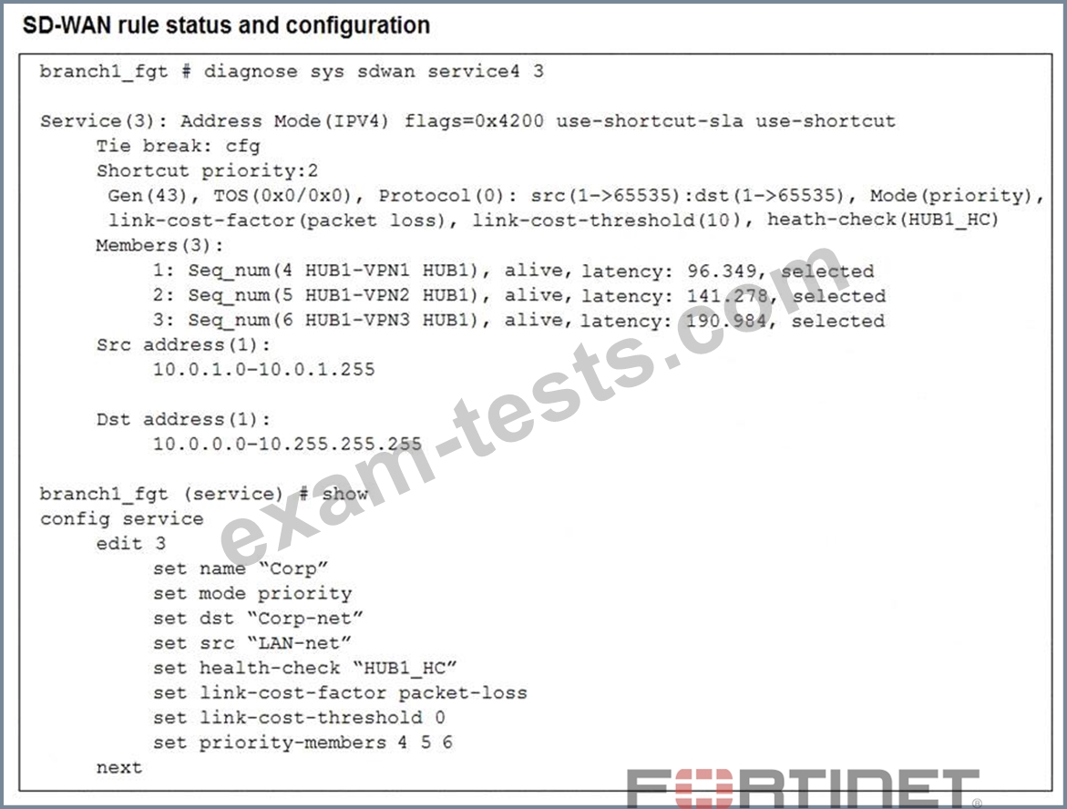 Refer to the exhibit, which shows the SD-WAN rule status and configuration.