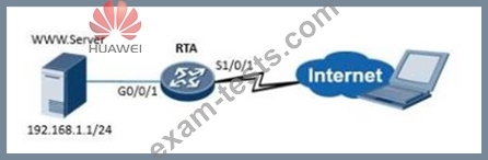 Refer to the graphic. A web server in a private network is required to provide HTTP services to public users. The network administrator is required to configure NAT on RTA. Which configuration should be used?