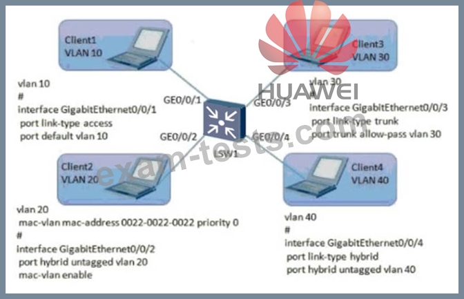 As shown in the figure, which of the following configuration of the VLAN on the Huawei switch is correct? (Multiple choice)
