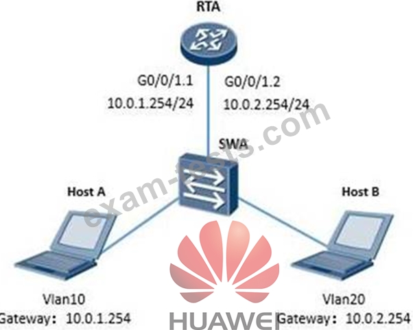 When interface G0/0/1.2 of RTA receives a frame from Host B, what will RTA do?