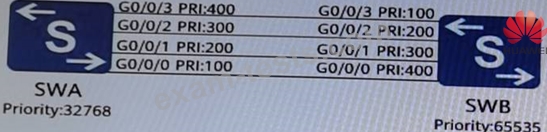 The priority of the LACP protocol is shown in the figure. Switch A and Switch B adopt LACP mode link aggregation, and all interfaces join the link aggregation group. At the same time, set the maximum number of active ports to 3. Which interface of switch A is not active port?