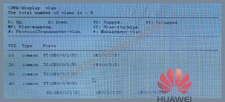 The output information of a switch is shown in the figure. Which of the following interfaces can forward data frames with VLAN ID 40 and do not carry tags when forwarding?