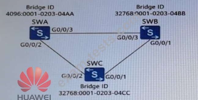 As shown in the figure below, all switches enable the STP protocol and keep other configurations in their default state. When the network is stable, which of the following statements are correct? (Multiple Choice)