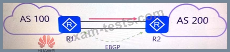 As shown in the figure, network administrator A on the R1 router, after modifying the MED value of the routing entry sent to R2 through the routing policy, can control the path of traffic entering AS100.