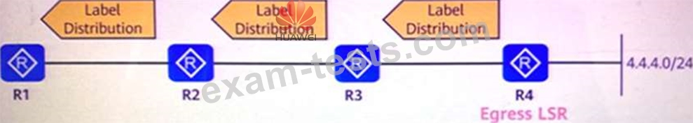 As shown in the figure, R1, R2, R3, and R4 are in the same MPLS domain, and LDP is used to allocate MPLS labels between devices. R4 is the FEC Egress LSR of 4.4.4.0/24. If you want to realize that when R1 accesses 4.4.4.0/24, R4 does not need to query the label table but can understand the forwarding priority of the data, then R3's outgoing label for the FEC should be (). (Please fill in the Arabic numerals directly, without symbols)
