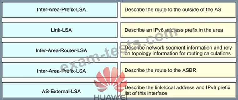 . OSPFv2 is an IGP running on an IIPv4 network. OSPFV3 is an IGP running on an IPv6 network. Compared with OSPFv2, OSFv3 has similar LSA, but the function is slightly different. The following is the description of the LSA function of OSPFv3. Please drag the LSA to the correct LSA function column.