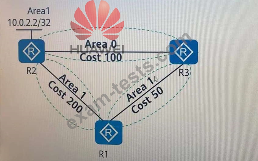 As shown in the figure, SF is enabled on all interfaces of the router, the cost value of the link is marked in the figure, and the Loopback0 interface of R2 is advertised in area 1, then the cost value of R1 reaching 10.0.2.2/32 is?