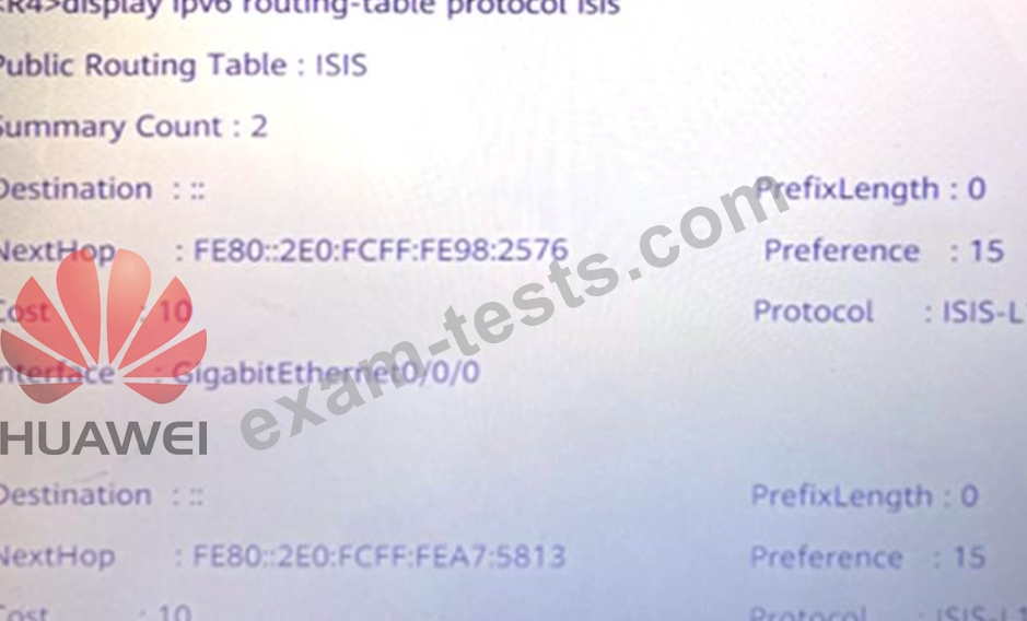 According to this figure, which of the following is the correct description of the IPv6 routing information calculated by the R4 router through IS-IS?
