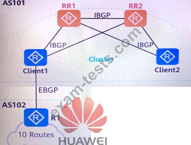 As shown in the figure, Client1 and Client2 act as clients of RR1 and RR2 at the same time, RR1 and RR2 are in the same Cluster, and R has introduced 10 routes. Assume that the BCP configuration is correct.