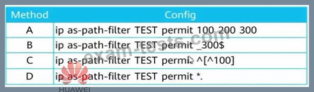 Network administrator A wants to use AS-Path Filter to match the BGP routing attribute AS_PATH[100200300]. Network administrator A sorts out the four configurations in the figure. Which of the following configurations can meet the requirements of network administrator A?