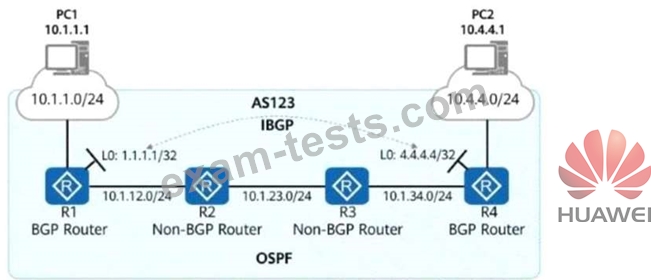 As shown in the figure, R1 to R4 are four routers in AS123. They all run OSPF to implement route reachability within the AS.