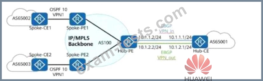 In the hub-spoke networking shown in the figure, to ensure correct route transmission, an administrator must manually configure the peer 10.1.2.1 _____ command in the IPv4 address family view of the BGP- VPN_out instance on the Hub-PE.