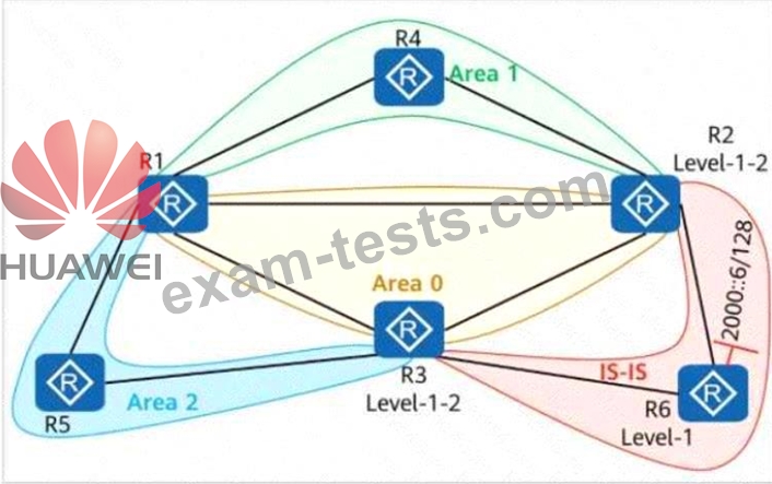 On the network shown in the figure, IS-IS IPv6 runs on R2, R6, and R3, and the IPv6 address of Loopback0 on R6 is 2000::6/128. OSPFv3 runs on other links. Area 1 is a stub area, and Area 2 is an NSSA. IS-IS routes are imported to OSPFv3 on R2 and R3. Which of the following statements are true?