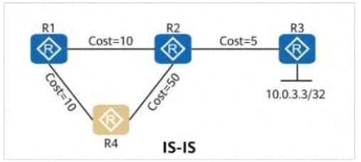 On the OSPF network shown in the figure, the cost values of links are marked. IS-IS Auto FRR is enabled on R1. The primary path from R1 to 10.0.3.3/32 is R1 # R2 # R3, and the backup path is R1 # R4 # R2 # R3.