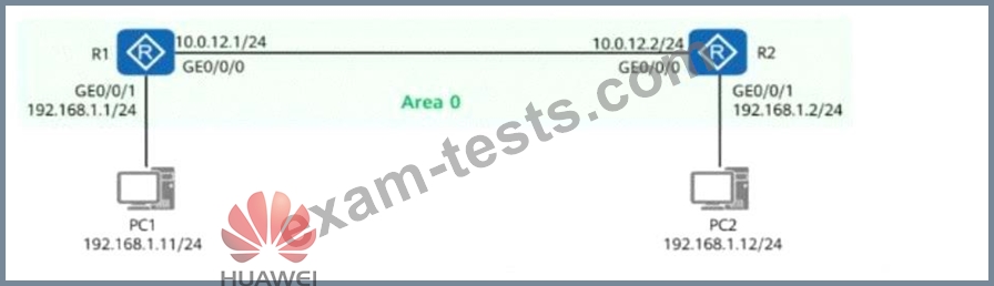 A network engineer provides a troubleshooting report after rectifying a fault. The actual network is simplified into the one shown in the figure, where R1 and R2 both have OSPF enabled and function as the gateways of PC1 and PC2, respectively. Given this, which of the following statements are true? Network Topology: * R1: * Interface GE0/0/0: 10.0.12.1/24 (Connected to R2) * Interface GE0/0/1: 192.168.1.1/24 (Gateway for PC1) R2: * Interface GE0/0/0: 10.0.12.2/24 (Connected to R1) * Interface GE0/0/1: 192.168.1.2/24 (Gateway for PC2) Options: