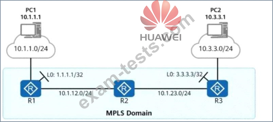 Comprehensive and Detailed In-Depth Explanation: This question is based on MPLS (Multiprotocol Label Switching) and its interaction with routing protocols . The goal is to ensure PC1 (10.1.1.1) can communicate with PC2 (10.3.3.1) over MPLS. Let's analyze each option carefully. 1## Understanding MPLS Routing Requirements To forward traffic using MPLS and LDP, we need: * An IGP (Interior Gateway Protocol) like OSPF or IS-IS to advertise network reachability. * Loopback interfaces advertised in OSPF to establish LDP neighbor relationships. * Consistent MPLS LDP enablement on all links in the MPLS domain. * End-to-end IP reachability between loopbacks (since LDP uses the loopback for label distribution). 2## Option A (Correct Answer) Analysis This configuration enables OSPF on all routers (R1, R2, and R3) across the MPLS domain: # All networks are advertised in OSPF area 0, ensuring IP reachability.# Loopback interfaces (1.1.1.1, 2.2.2.2, 3.3.3.3) are included, which is required for MPLS LDP peer establishment.# PC1's network (10.1.1.0/24) and PC2's network (10.3.3.0/24) are properly advertised, ensuring end-to-end connectivity.# R1, R2, and R3 have OSPF neighbor relationships, meaning LDP can use OSPF routes for label switching. # Conclusion: Option A meets all MPLS forwarding requirements and is the correct answer. 3## Why Other Options Are Incorrect # Option B (Incorrect) * Uses BGP instead of OSPF, which is not optimal for MPLS forwarding in a simple MPLS domain. * LDP requires an IGP like OSPF or IS-IS to work efficiently. * BGP alone does not establish LDP label bindings between R1, R2, and R3. # Option C (Incorrect) * Mixes OSPF and BGP, causing routing inconsistency. * Uses ip ip-prefix and recursive lookup, which is unnecessary in a standard MPLS domain. * BGP does not distribute labels dynamically like an IGP with LDP. # Option D (Incorrect) * R1 does not advertise the 10.1.1.0/24 network, meaning PC1's network is not reachable. * R3 does not advertise the 10.3.3.0/24 network, meaning PC2's network is not reachable. * Missing essential routing entries for full end-to-end reachability. References: # HCIP-Datacom Advanced Routing & Switching Technology# Huawei Official MPLS and LDP Configuration Guide# Huawei Enterprise Networking Documentation
