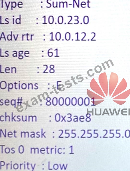Comprehensive and Detailed In-Depth Explanation: * Understanding the network connectivity: * R1 and R2 are connected through 10.0.12.0/24 and running OSPF in Area 0. * PC1 (192.168.1.11/24) is connected to R1, and PC2 (192.168.1.12/24) is connected to R2. * Analyzing each option: * Option A: "R2 cannot ping 10.0.12.1." # Incorrect * R2 is directly connected to 10.0.12.1/24 (R1) on GE0/0/0, so it can ping this IP without any routing issues. * Option B: "PC1 and PC2 cannot ping each other." # Correct * OSPF is only running between R1 and R2. There is no indication that R1 and R2 are redistributing connected routes (192.168.1.0/24 and 192.168.1.0/24) into OSPF. * As a result, R1 does not know how to reach 192.168.1.12, and R2 does not know how to reach 192.168.1.11, making communication between PC1 and PC2 impossible. * Option C: "R1 cannot ping 192.168.1.2." # Incorrect * 192.168.1.2 is directly connected to R2, and if R1 can reach R2 through OSPF, then R1 should be able to ping 192.168.1.2. * Option D: "R1 cannot ping 192.168.1.12." # Correct * 192.168.1.12 is connected to R2, but if R2 does not advertise this network to R1, R1 has no route to reach it. * Since PC1 (192.168.1.11) and PC2 (192.168.1.12) are on different subnets, and there's no redistribution, R1 cannot reach PC2's IP. Key Takeaways and Fix Recommendations: * To allow PC1 and PC2 to communicate, R1 and R2 must advertise their directly connected networks (192.168.1.0/24) in OSPF using the network command or by redistributing connected routes into OSPF. * Command example: makefile CopyEdit R1: router ospf 1 network 192.168.1.0 0.0.0.255 area 0 R2: router ospf 1 network 192.168.1.0 0.0.0.255 area 0 * This would allow R1 to learn about PC2's network and R2 to learn about PC1's network, enabling communication. HCIP-Datacom-Advanced Routing & Switching Technology References: * HCIP-Datacom Official Certification Guide, Chapter on OSPF Network Design and Troubleshooting. * Huawei Datacom Training Materials, Section on OSPF Inter-Area and External Route Advertisements. * Huawei Datacom Configuration Guide, Command Reference for OSPF network advertisement and route redistribution.
