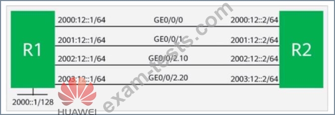 R1 and R2 use directly connected interfaces to establish an EBGP peer relationship. R1 imports 2000:: 1/128 to BGR By default, which of the following is the next hop of the route from R2 to 2000:: 1/128?
