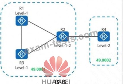 On the IS-IS network shown in the figure, R1 imports a default route using the default-route-advertise always level-1 command. Which of the following routers have the default route in their routing tables?
