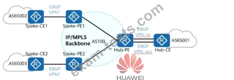 In the hub-spoke networking shown in the figure, the Hub-PE can be configured to allow repetitive local AS numbers for correct route transmission.