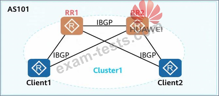 As shown in the figure, in a medium-sized network, BGP generally deploys dual RRs to improve R reliability. When deploying dual RRs, the Cluster IDs of the two RRs are generally set to be the same. The reason for this is