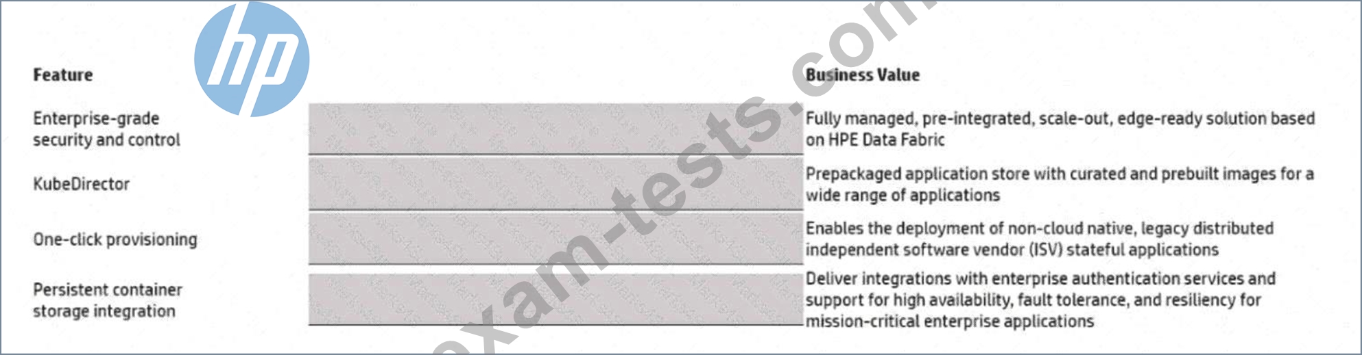 Match the feature of the HPE Ezmeral Container Platform to its business value.