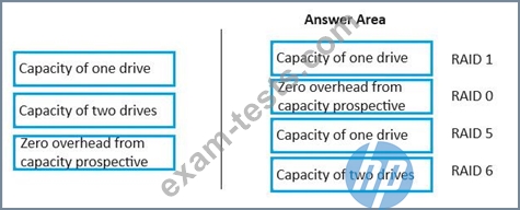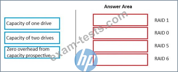 Match the RAID level with its capacity overhead. (Each option may be used once, more than once, or not at all.)