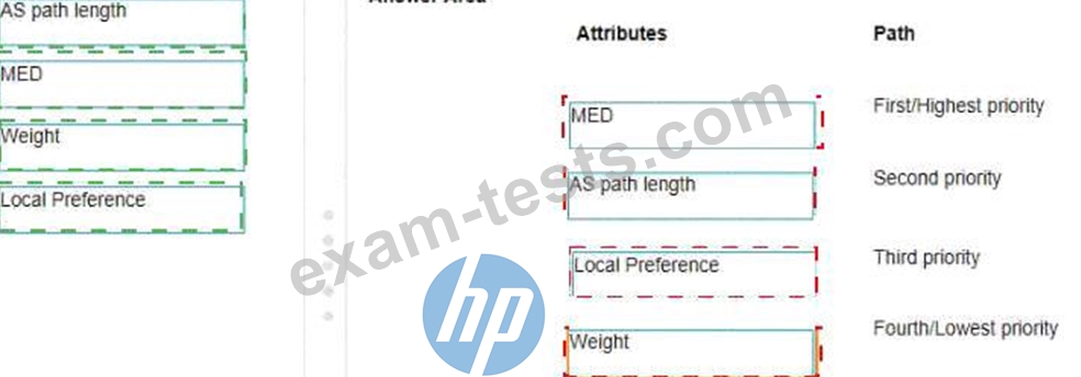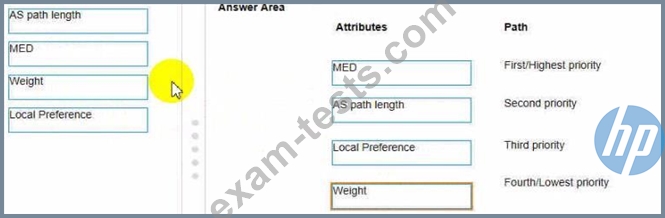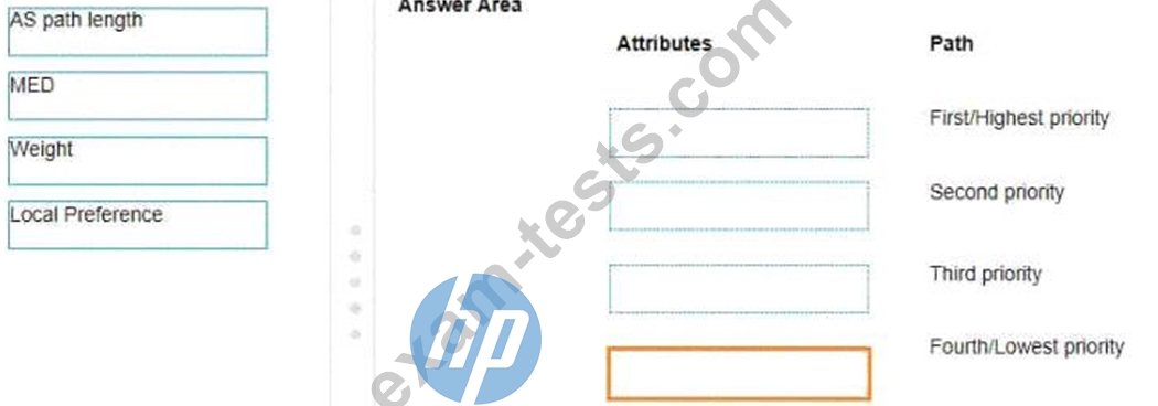Match the BGP path selection criteria attributes (Each option may be used once, more than once, or not at all)