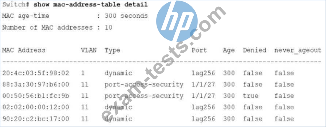 MAC authentication is enabled on port 1/1/27 of an AOS-CX switch. The following MAC addresses are defined on the AAA server: