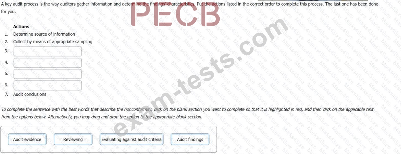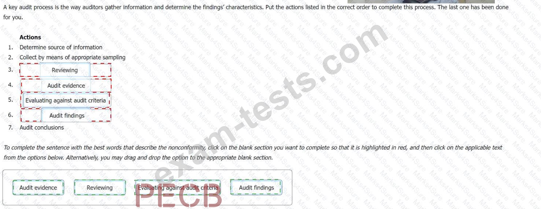 關鍵的審計流程是審計員收集資訊並確定調查結果特徵的方式。按正確的順序列出列出的操作以完成此過程。最後一項已為您完成。
