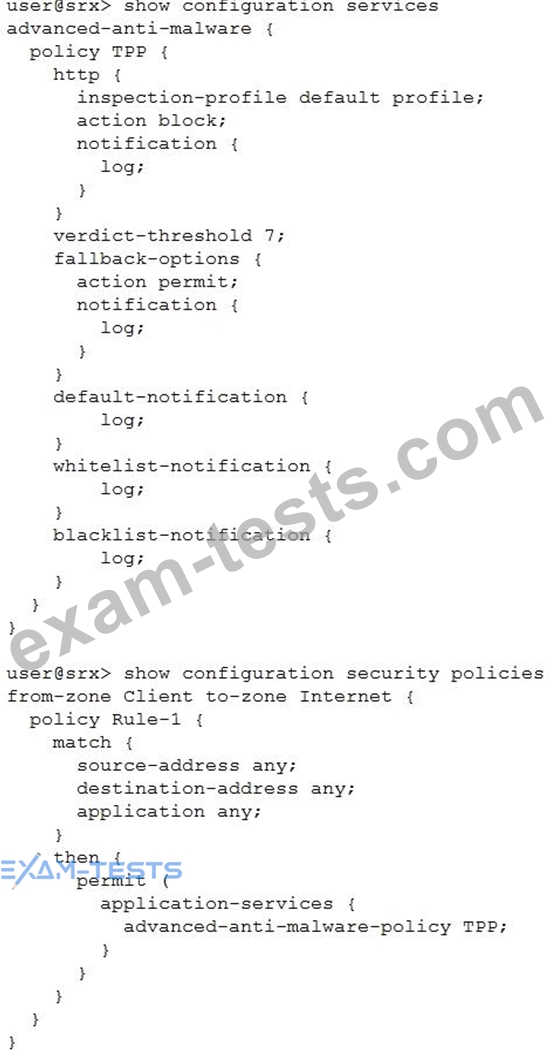 You have deployed Sky ATP to protect your network from attacks so that users are unable to download malicious files. However, after a user attempts to download a malicious file, they are still able to communicate through the SRX Series device.