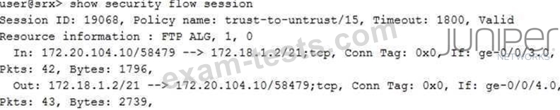 Which two statements are true about the session shown in the exhibit? (Choose two.)