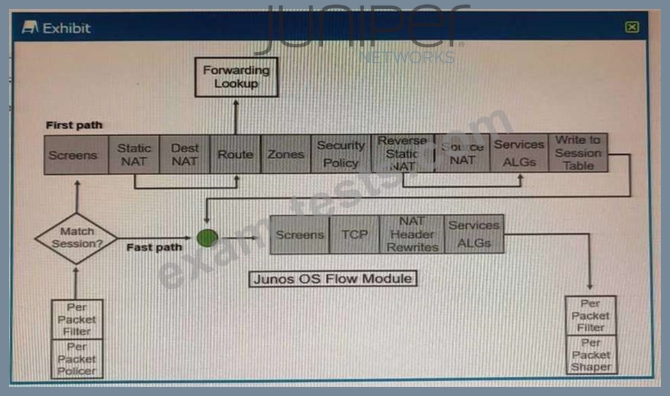 Referring to the SRX Series flow module diagram shown in the exhibit, where is application security processed?