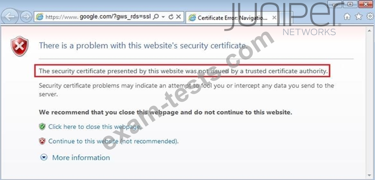 You have implemented SSL proxy client protection. After implementing this feature, your users are complaining about the warning message shown in the exhibit.
