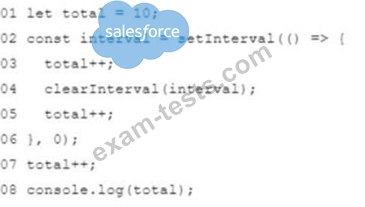 Considering that JavaScript is single-threaded, what is the output of line 08 after the code executes?