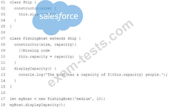 Which statement should be added to line 09 for the code to display 'The boat has a capacity of 10 people?