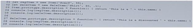 A class was written to represent items for purchase in an online store, and a second class representing items that are on sale at a discounted price. The constructor sets the name to the first value passed in. The pseudocode is below:
