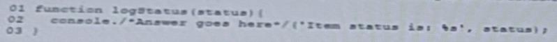 A developer creates a generic function to log custom messages In the console. To do this, the function below is implemented.