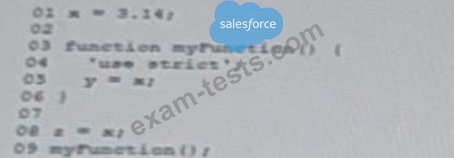 Considering the implementations of 'use strict' on line 04, which three statements describes the executes of the code? Choose 3 answers