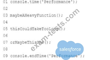 Universal Containers (UC) just launched a new landing page, but users complain that the website is slow. A developer found some functions any that might cause this problem. To verify this, the developer decides to execute everything and log the time each of these three suspicious functions consumes.