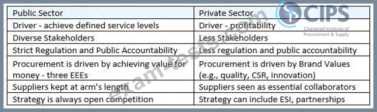 - You could also mention that there are differences between the public and private sector procurement at the different stages. E.g. Public Sector requires open competitions for contracts of a certain value and must follow the rules set out in Public Contract Regulations - the private sector doesn't have such strict regulations so there is much more flexibility in how tenders are completed. Also in the public sector, the evaluation criteria needs to be agreed beforehand and presented in the ITT- not the same for the private sector.