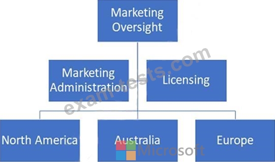 ProseWare, Inc. has a total of 10 Dynamics 365 for Marketing licenses for each of the three geographic Business Units, one of which is the Administrator license. All other business units have 5 licenses each.