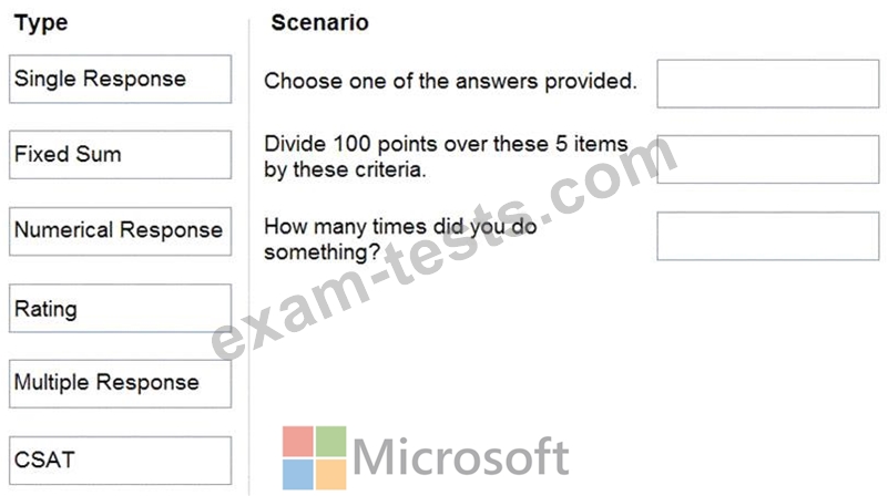 You are creating a survey using Dynamics 365 Customer Voice. You need to include multiple question types.