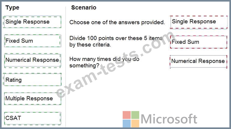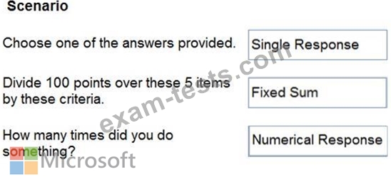 appropriate survey question type to the scenario/example. Each survey question type may be used once, more