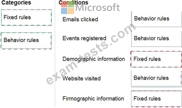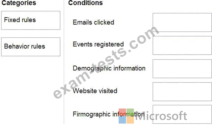 Which categories should you use during the configuration? To answer, drag the appropriate category to the