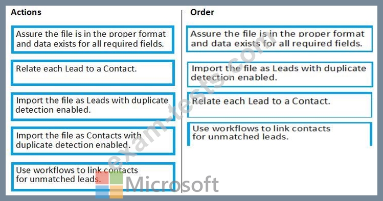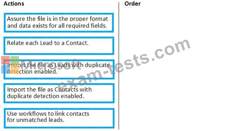 To answer, move the appropriate actions from the list of actions to the answer area and arrange them in the