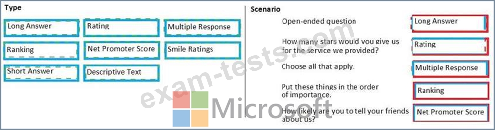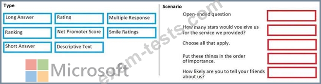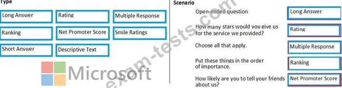 the appropriate survey question to the scenario/example. Each survey question type may be used once, more